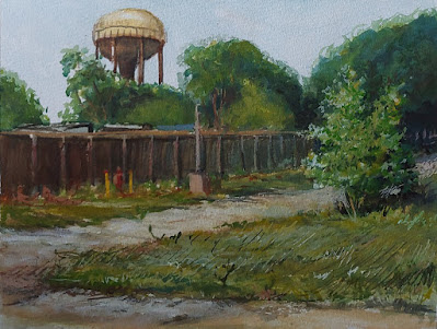 Now that the spring semester is in the books, things are starting to settle down. I'm getting into some sort of schedule anyways. I've been eyeing this tree for a while. It is just a few minutes from the house. I was able to find a nice spot in a lot where I could paint from the car. (It's been oddly hot here for spring.)
